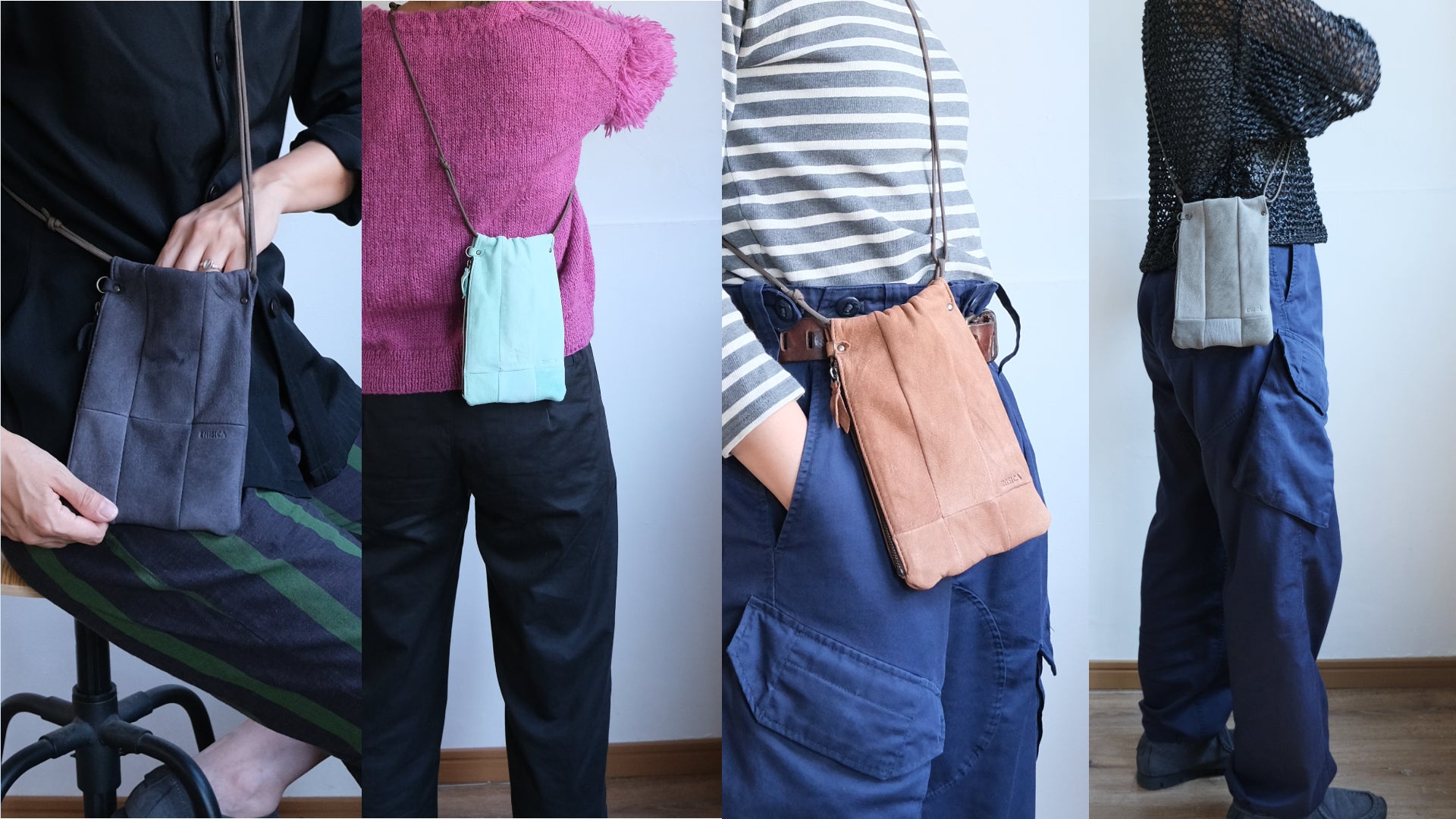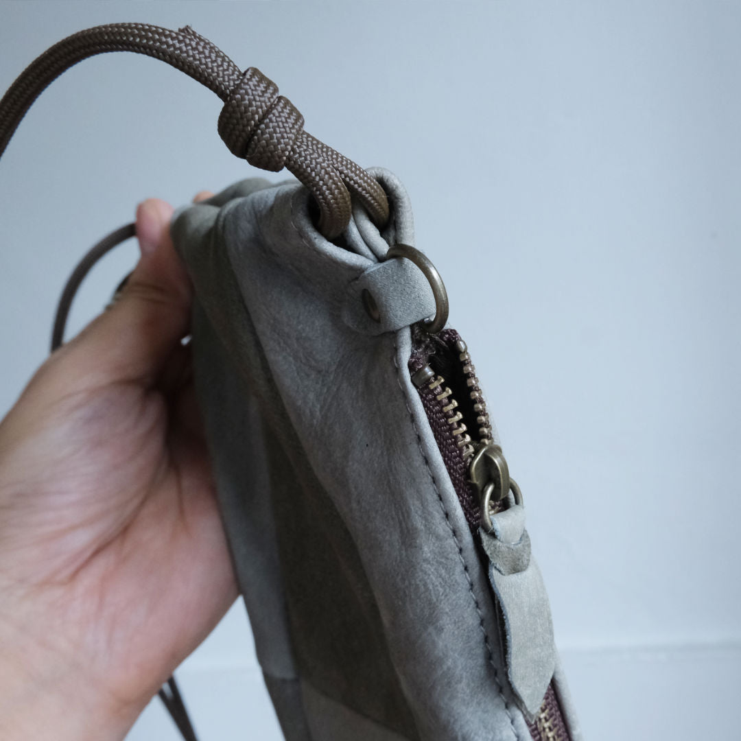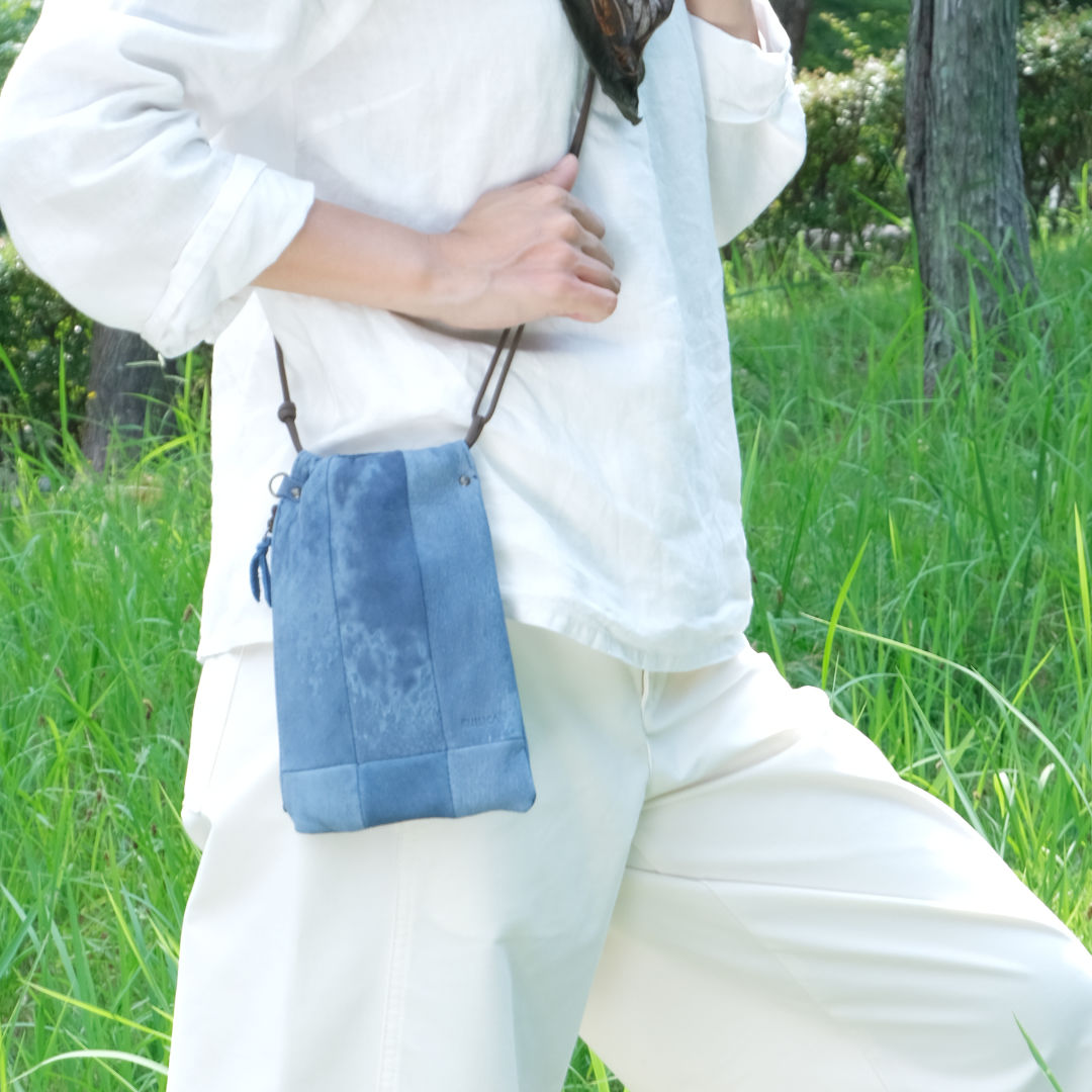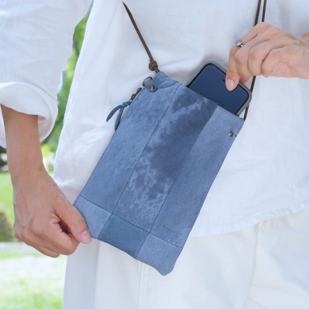 「ツギシカ・スマートフォンポシェット」は、シンプルな服装に質感&抜け感をプラスする、国産ジビエ鹿革をパッチワークしたスマホショルダー。ユニセックスなデザインで、性別を問わずお使いいただけます。仕分けができるサイドポケット付。