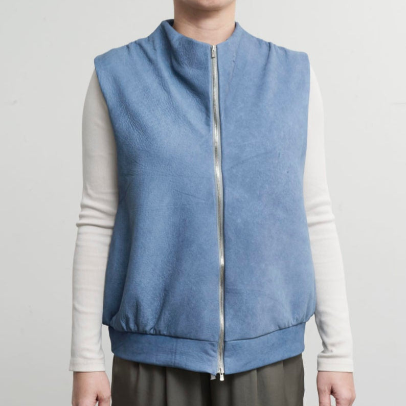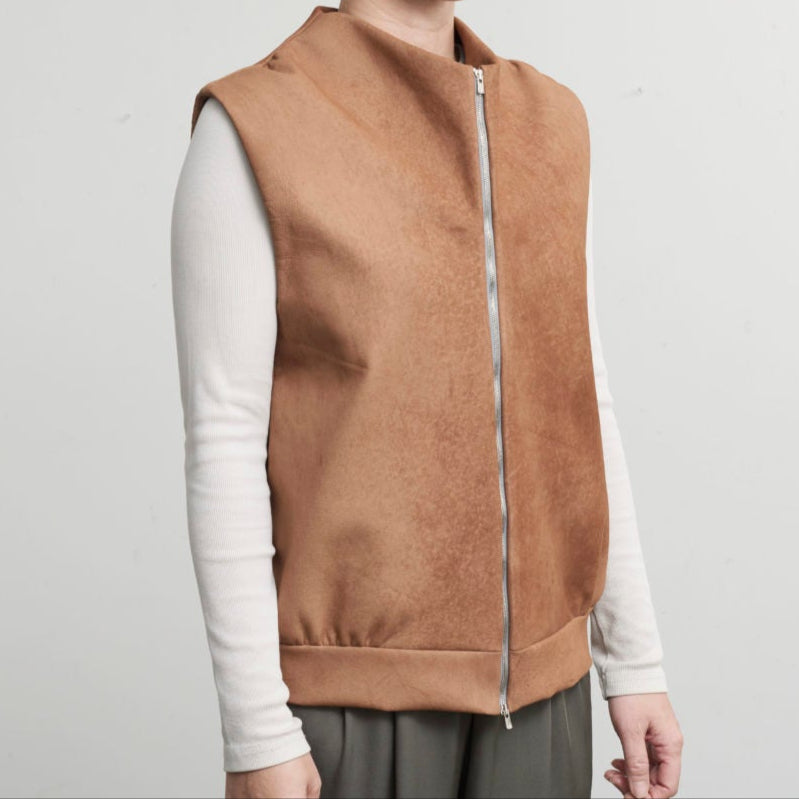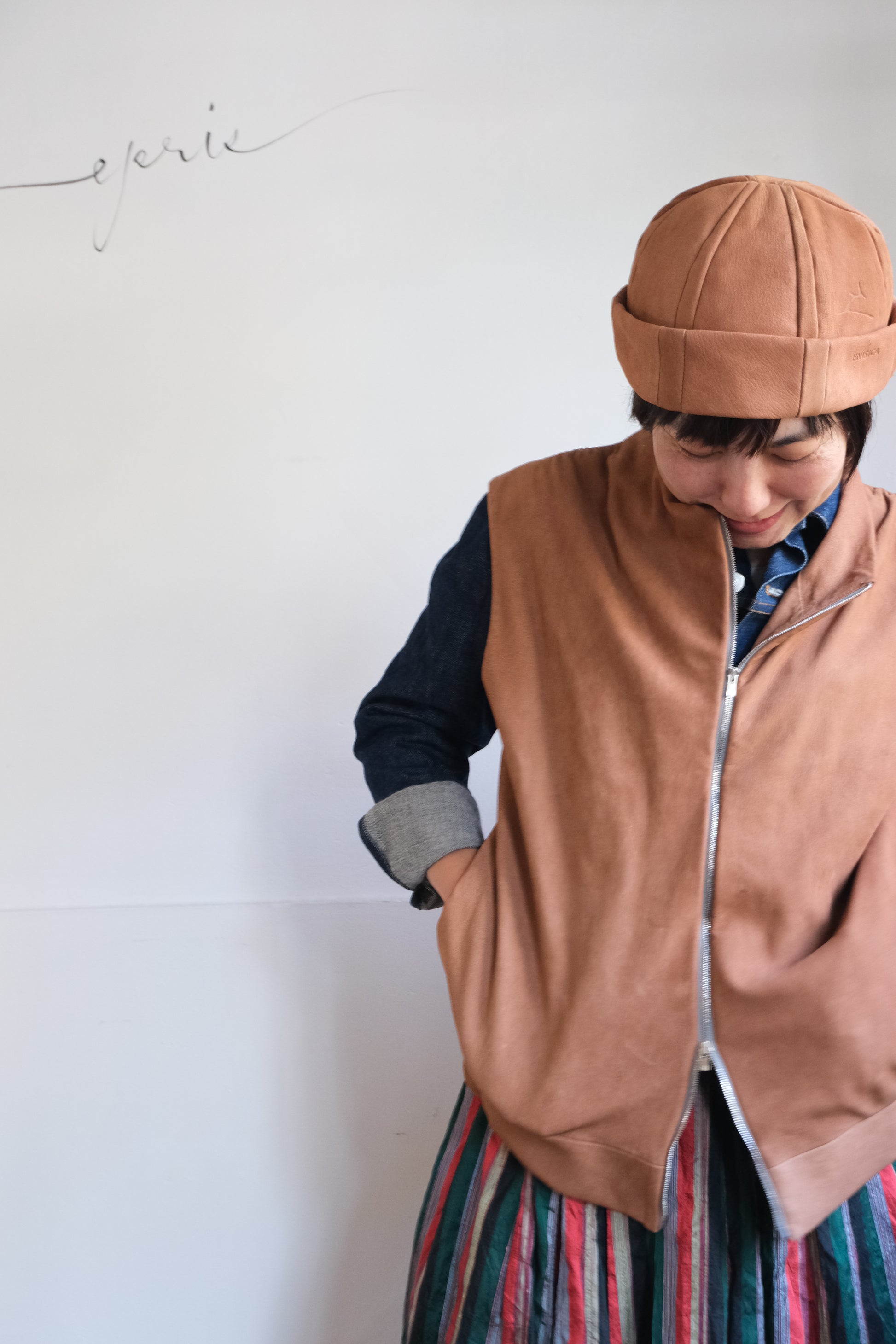 本革ならではの保温性・防風性・通気性はそのままに、革のカシミヤとよばれる鹿革のしなやかさ、軽さを最大限に活かし、まるでカーディガンのように気軽に羽織れる、軽くてしなやかなレザーベストです。使うほどに馴染み、カジュアルでありながらも本革の上質感も兼ね備えた男女兼用のファッションアイテムです(サイズ展開・M / L / XL)。