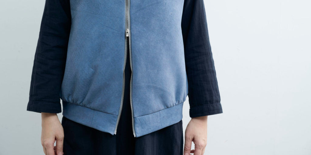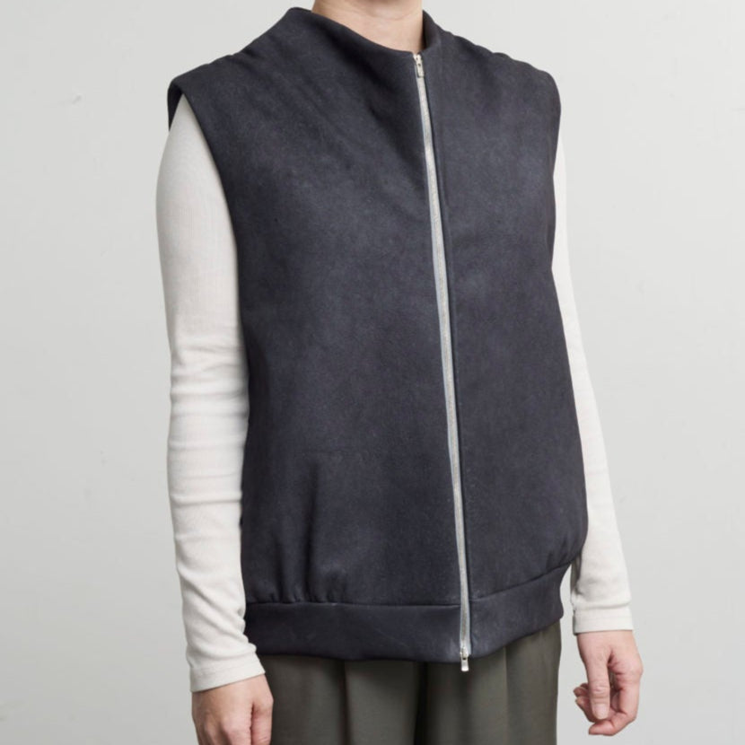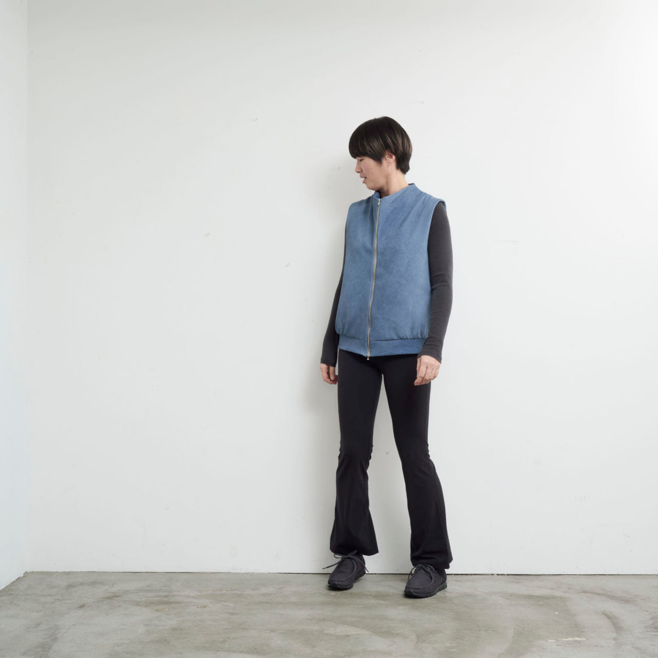 内縫いで柔らかな縫い目、トレーナーでつくったベストのようなカジュアル感。