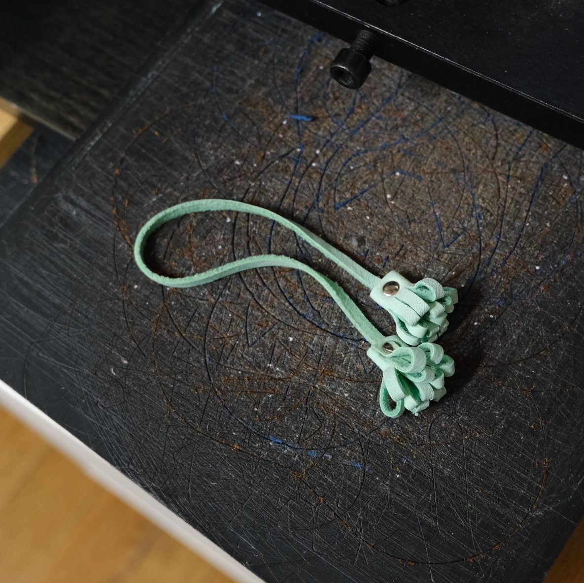 ENISICAオリジナルの国産ジビエ鹿革を使ってタッセルを作ります。
